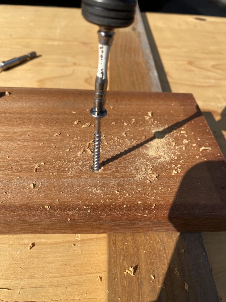 デッキやガレージ作りで、イタウバやウリンなどの堅木(ハードウッド)を使う場合は、作法を一段階増やさなければなりません。さもなければ、ビスは簡単に折れます。