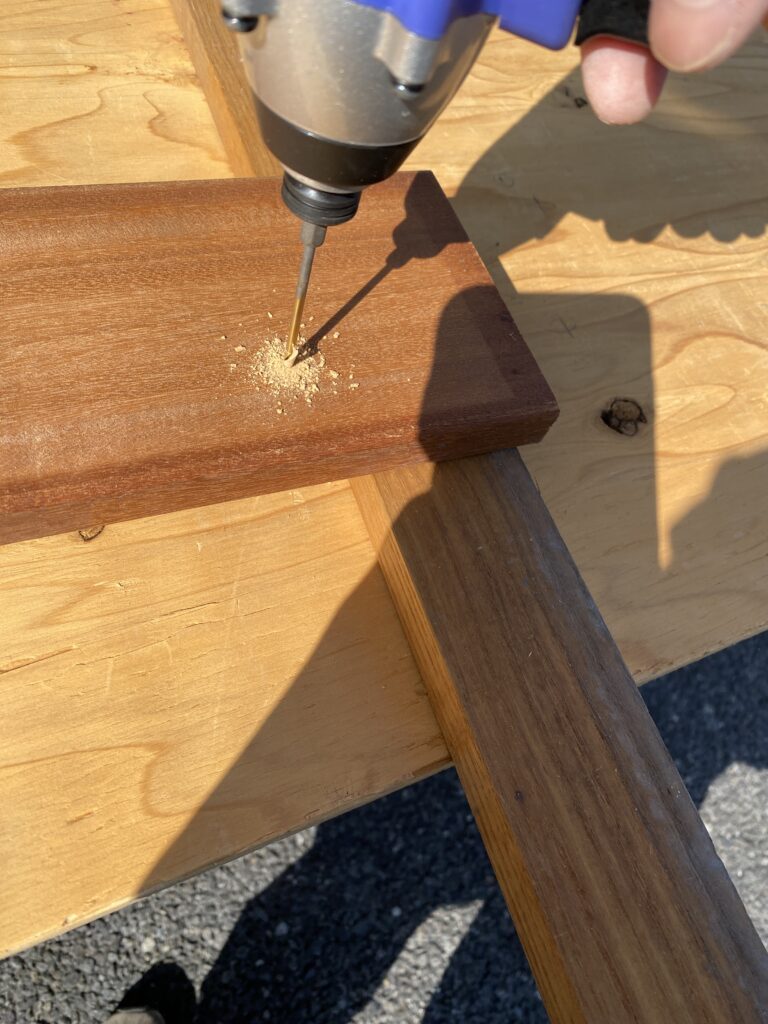 堅木は抵抗が強すぎるため、そのまま打つとビスが耐えきれず折れてしまいます。必ず下穴をあけましょう。